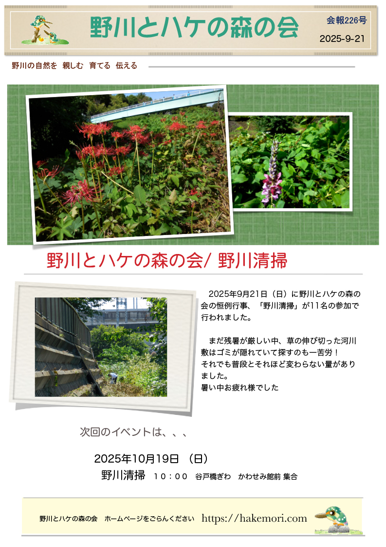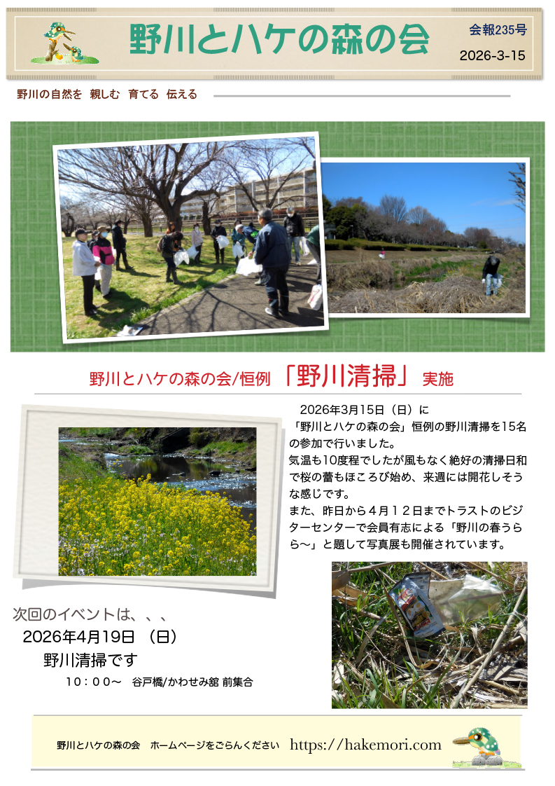 総会 11:00 せたがやトラストビジターセンター会議室 会 報 |